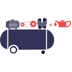 Винтовой компрессор нагнетает воздух последовательно посредством винтовой пары, которая вращается в резервуаре с маслом. Это обеспечивает низкий коэффициент трения и эффективный теплоотвод от рабочей зоны. Масляный клин создает отличные условия для сжатия воздуха.